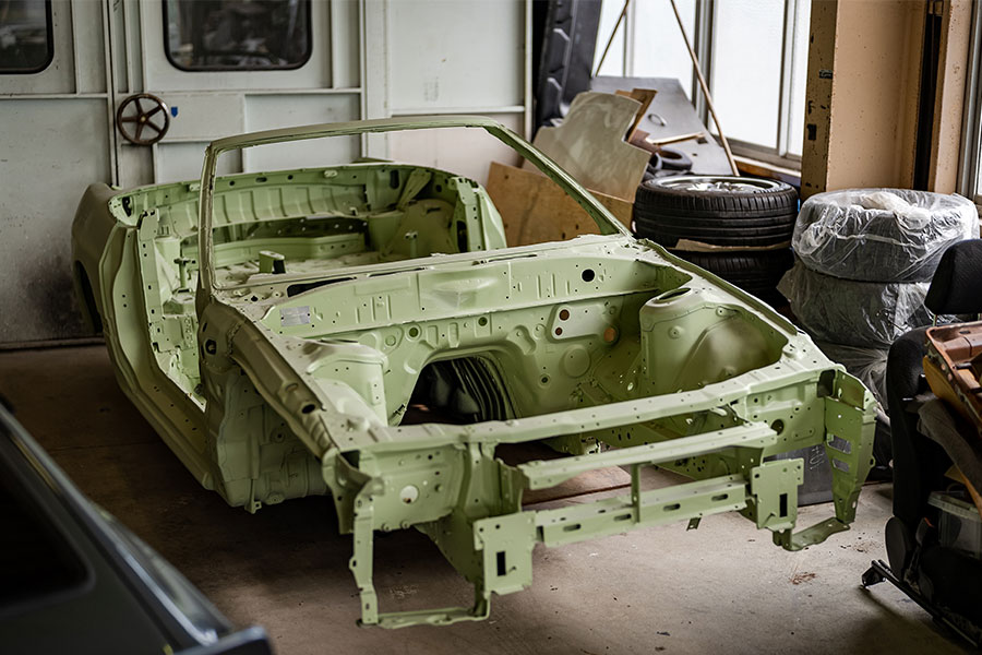 無事故ボディーを全バラシにてオリジナル色シェイドグリーンにNEWPAINT